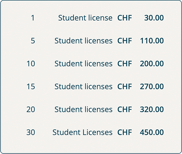 A course instructor license and course member licenses are valid for all modules and for a virtually unlimited number of courses. Each module contains templates for decisions and presentations, including simulation results, manuals, and the corresponding theory chapters.